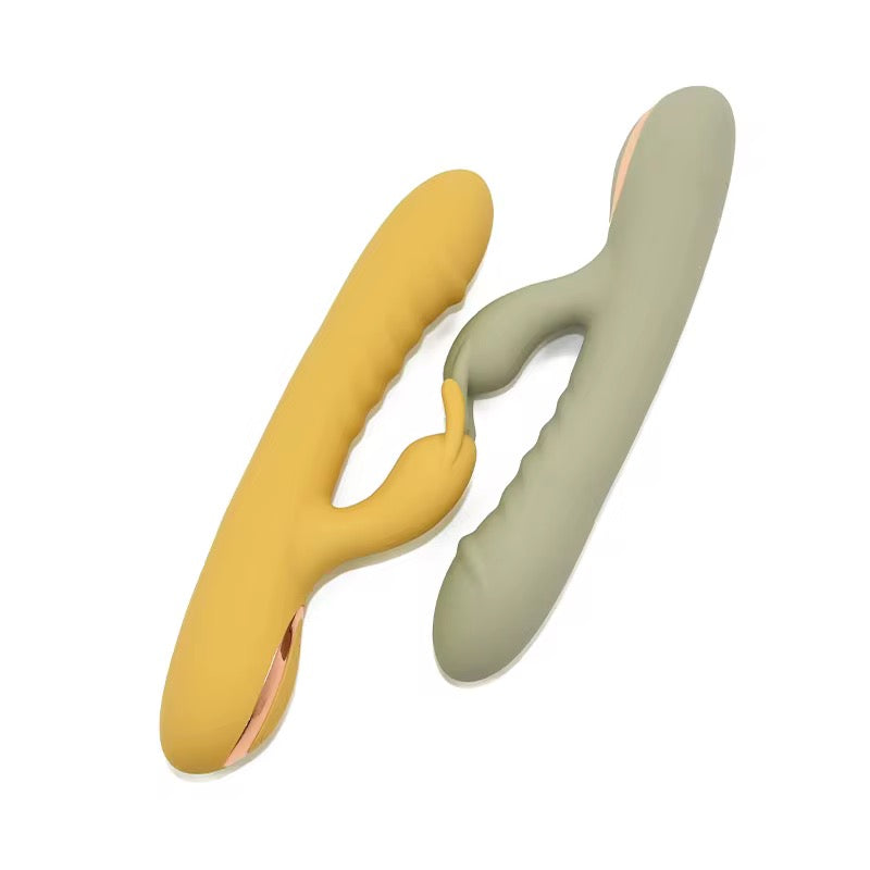 Meet the Swing & Suck Ribbed G-Spot Vibrator — a dual-action pleasure device designed to deliver deep internal stimulation and precise external satisfaction. Crafted from silky, body-safe silicone and finished with elegant gold detailing, this vibrator blends luxury, power, and innovation in one irresistible package.